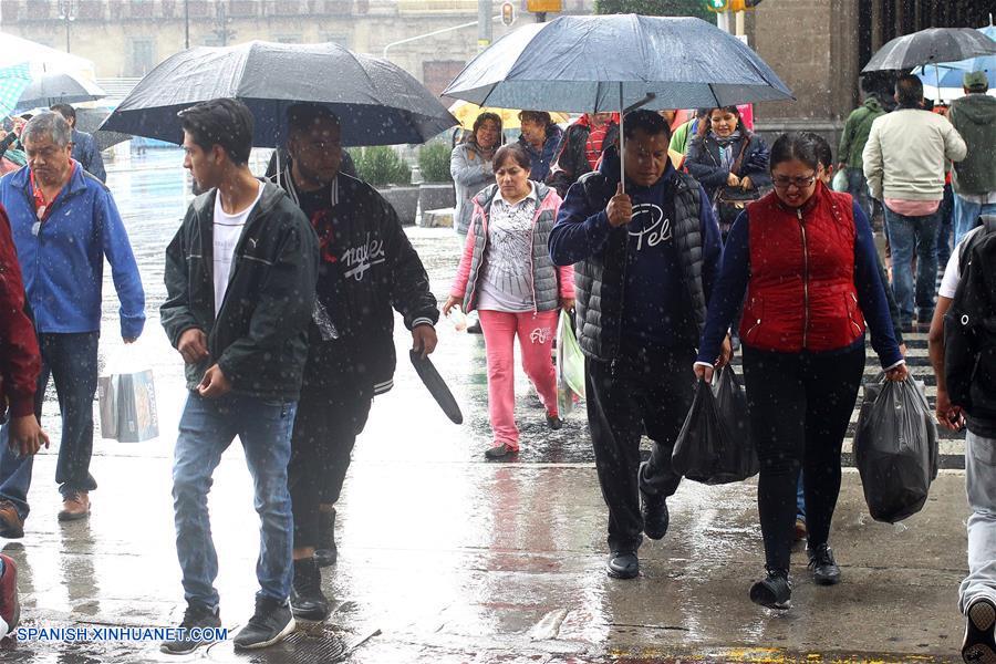 CIUDAD DE MEXICO, septiembre 9, 2017 (Xinhua) -- Residentes se protegen con paraguas de la lluvia provocada por la tormenta tropical Katia, en la Ciudad de México, capital de México, el 9 de septiembre de 2017. Al menos dos muertos fue el saldo que dejó el paso del ciclón Katia, ahora depresión tropical, en el estado mexicano de Veracruz, informó el sábado el gobernador de la entidad, Miguel Angel Yunes Linares. En un mensaje difundido en redes sociales, el gobernador indicó que las víctimas fallecieron en Xalapa, capital de Veracruz, como consecuencia de un deslizamiento de tierra en la colonia Luis Donaldo Colosio ubicada en la cuenca del río Sede?o. Este sábado, el meteoro se ubicó a 20 kilómetros al oeste-noroeste de la ciudad de Cuetzalán, Puebla, de acuerdo con el Servicio Meteorológico Nacional (SMN) de México. (Xinhua/Str)