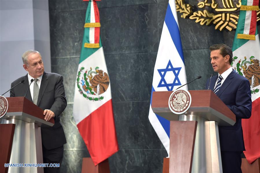 CIUDAD DE MEXICO, septiembre 14, 2017 (Xinhua) -- Imagen cedida por la Presidencia de México, del presidente mexicano, Enrique Pe?a Nieto (d), y el visitante primer ministro de Israel, Benjamin Netanyahu (i), participando durante una conferencia de prensa conjunta luego de su reunión en la Residencia Oficial de Los Pinos, en la Ciudad de México, capital de México, el 14 de septiembre de 2017. El primer ministro israelí, Benjamin Netanyahu, expresó el jueves sus condolencias a México por las víctimas del terremoto de 8.2 grados del pasado 7 de septiembre, cuyo saldo es hasta ahora de 98 muertos. Netanyahu realiza una visita de trabajo en México, donde después de reunirse en privado con el presidente mexicano, Enrique Pe?a Nieto, ofreció una conferencia de prensa conjunta. El primer ministro de Israel permanecerá hasta el 15 de septiembre, con el propósito de ampliar y fortalecer los vínculos económicos y comerciales. (Xinhua/Presidencia de México)