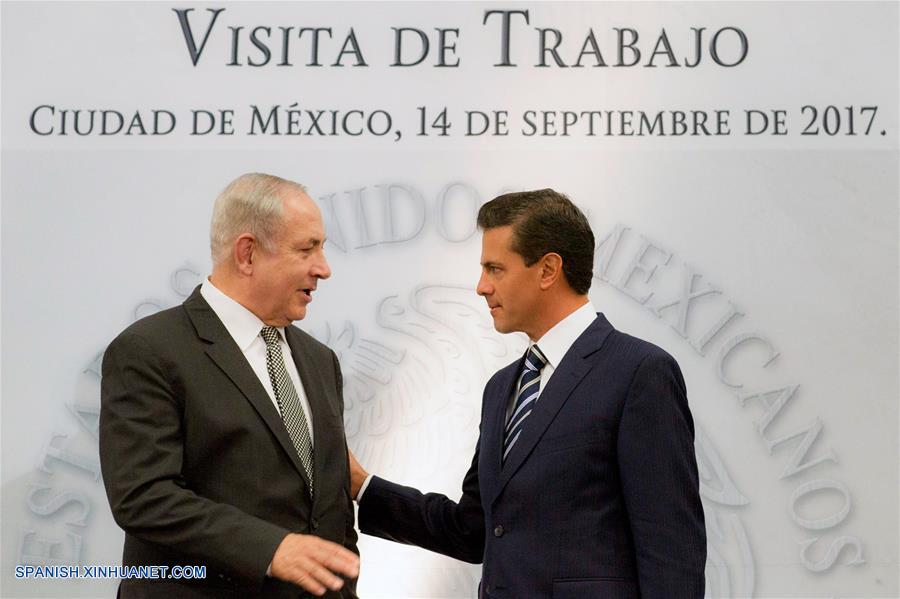 CIUDAD DE MEXICO, septiembre 14, 2017 (Xinhua) -- Imagen cedida por la Presidencia de México, del presidente mexicano, Enrique Pe?a Nieto (d), conversando con el visitante primer ministro de Israel, Benjamin Netanyahu (i), durante su reunión en la Residencia Oficial de Los Pinos, en la Ciudad de México, capital de México, el 14 de septiembre de 2017. El primer ministro israelí, Benjamin Netanyahu, expresó el jueves sus condolencias a México por las víctimas del terremoto de 8.2 grados del pasado 7 de septiembre, cuyo saldo es hasta ahora de 98 muertos. Netanyahu realiza una visita de trabajo en México, donde después de reunirse en privado con el presidente mexicano, Enrique Pe?a Nieto, ofreció una conferencia de prensa conjunta. El primer ministro de Israel permanecerá hasta el 15 de septiembre, con el propósito de ampliar y fortalecer los vínculos económicos y comerciales. (Xinhua/Presidencia de México)