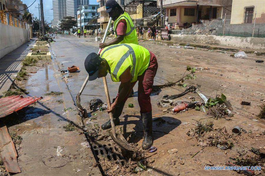 LA HABANA, septiembre 18, 2017 (Xinhua) -- Imagen del 11 de septiembre de 2017, de personas participando durante las labores de recuperación y limpieza tras el paso del huracán Irma, en una calle en el municipio Plaza de la Revolución, en La Habana, Cuba. El huracán Irma dejó al menos 10 muertos en Cuba, aseguró el lunes un informe del Estado Mayor de la Defensa Civil de la isla publicado por la televisión estatal. Los fallecidos son de las provincias de La Habana, Matanzas, Camagüey y Ciego de Avila en el centro y occidente de la isla. (Xinhua/Joaquín Hernández)