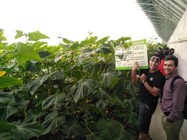 Los periodistas visitan un invernadero para el cultivo de pepino en la ciudad de Zongzhai, provincia de Gansu, el 17 de septiembre. (Foto: Kimeng Hilton)