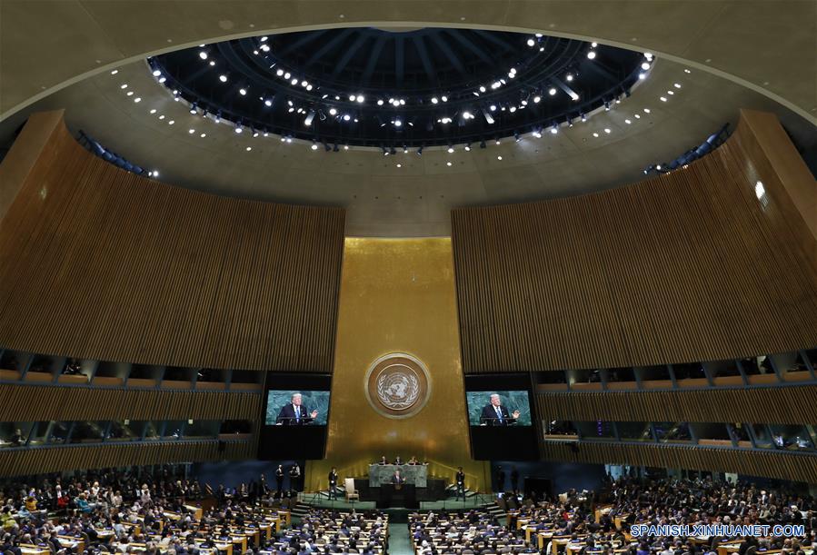 El presidente de Estados Unidos, Donald Trump, pronuncia un discurso durante el debate general de la 72 sesión de la Asamblea General de la Organización de las Naciones Unidas (ONU), en la sede de la ONU en Nueva York, Estados Unidos, el 19 de septiembre de 2017. (Xinhua/Li Muzi)