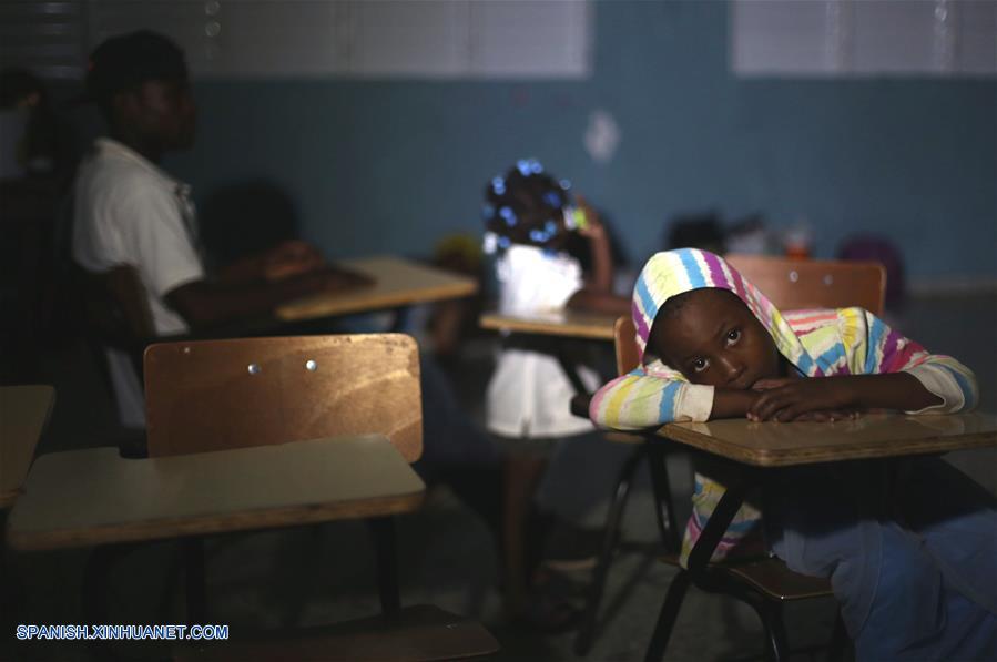 Residentes se resguardan en un albergue debido al paso del huracán María en la zona turística de Punta Cana, República Dominicana, el 20 de septiembre de 2017. (Xinhua/Roberto Guzmán)