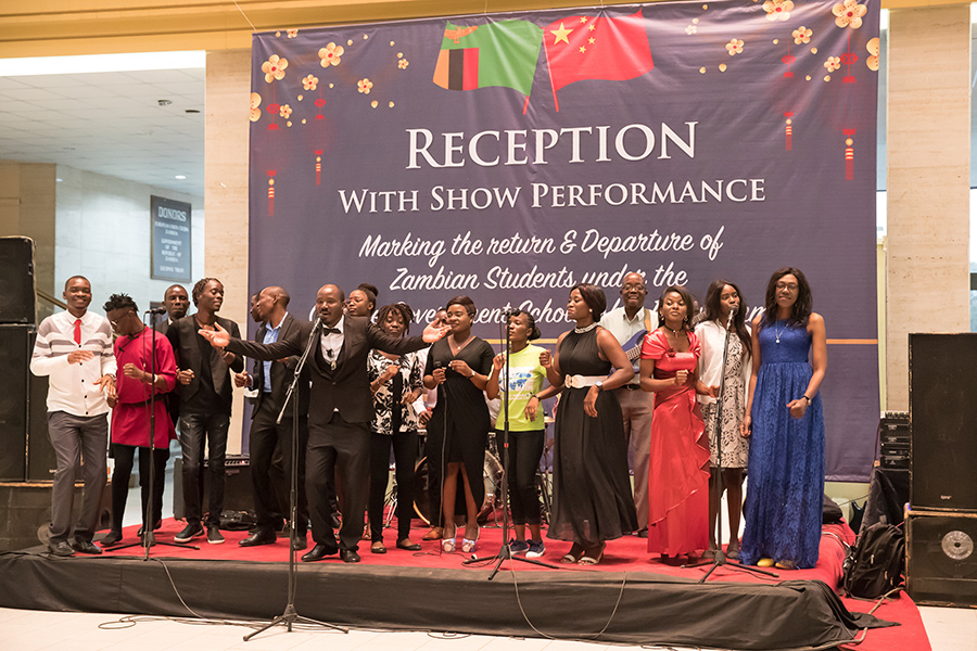 Estudiantes de Zambia, graduados en China, participan en una recepción celebrada por la Embajada de China en Lusaka, Zambia, el 25 de agosto del 2017. Todos recibieron becas del gobierno chino. [Foto: Xinhua]