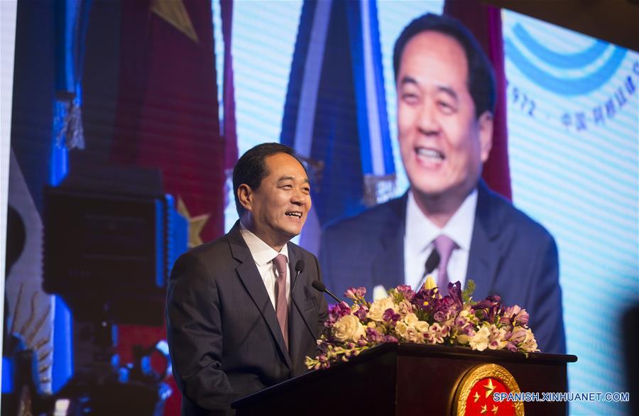 El embajador de China en Argentina, Yang Wanming, pronuncia un discurso durante una recepción para festejar el 68 aniversario de la fundación de la República Popular China, en Buenos Aires, Argentina, el 26 de septiembre de 2017. El embajador chino ante Argentina, Yang Wanming, afirmó el martes que la "nueva normalidad" del país asiático es una "gran oportunidad para profundizar y expandir la cooperación" entre Beijing y Buenos Aires. "Durante estos últimos cinco a?os, la integración de China con el mundo ha alcanzado un nuevo nivel. La parte china apuesta por construir nuevas relaciones internacionales, con foco en la cooperación de ganancia compartida", enfatizó el diplomático. Yang hizo estas declaraciones durante una recepción para festejar el 68 aniversario de la fundación de la República Popular China, acto al que asistieron, entre otros, el gobernador de la provincia de Jujuy, Gerardo Morales, el ministro de Ambiente y Desarrollo Sustentable, Sergio Bergman, y el diputado oficialista Eduardo Amadeo. (Xinhua/Martín Zabala)