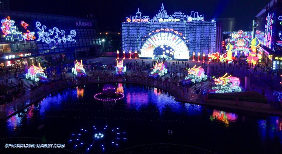 ZHEJIANG, septiembre 27, 2017 (Xinhua) -- Vista de un conjunto de linternas sobre el agua durante un festival de la linterna, en Haining, provincia de Zhejiang, en el este de China, el 27 de septiembre de 2017. Un festival de la linterna es llevado a cabo en Haining para celebrar el próximo Día Nacional y el Festival del Medio Oto?o. (Xinhua/Zhang Cheng)