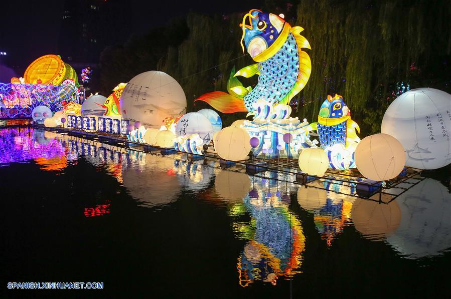ZHEJIANG, septiembre 27, 2017 (Xinhua) -- Vista de un conjunto de linternas sobre el agua durante un festival de la linterna, en Haining, provincia de Zhejiang, en el este de China, el 27 de septiembre de 2017. Un festival de la linterna es llevado a cabo en Haining para celebrar el próximo Día Nacional y el Festival del Medio Oto?o. (Xinhua/Zhang Cheng)