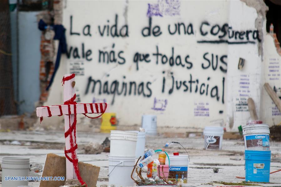CIUDAD DE MEXICO, septiembre 29, 2017 (Xinhua) -- Vista de ofrendas en los escombros de un edificio colapsado después del sismo del 19 de septiembre en la calle de Bolivar 168, en la Ciudad de México, capital de México, el 29 de septiembre de 2017. (Xinhua/Francisco Ca?edo)