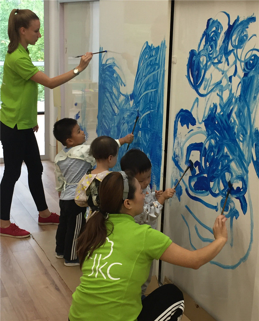 Ni?os pintan con sus profesoras en una guardería de Beijing, el 26 de septiembre. [Foto de Milan (Serbia) / para China Daily]