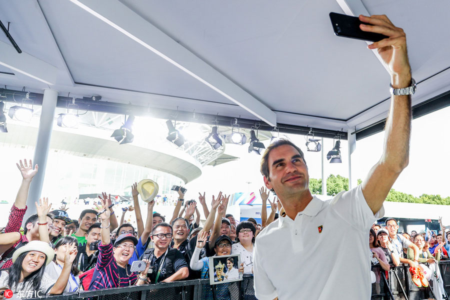 El jugador de tenis suizo Roger Federer junto a sus aficionados chinos durante el tercer día de la competencia de tenis "Maestros Shanghai Rolex 2017". 9 de octubre del 2017. [Foto: IC]