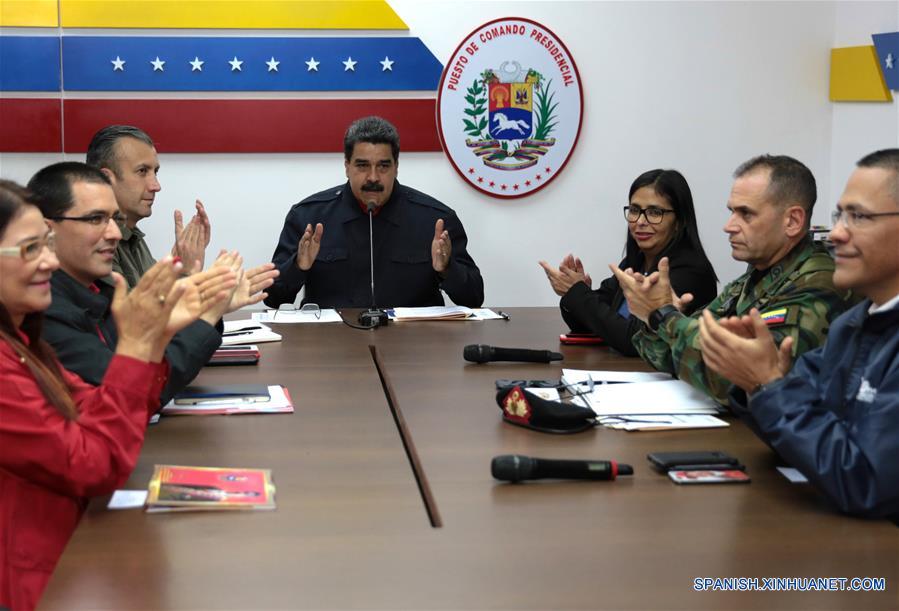 CARACAS, octubre 15, 2017 (Xinhua) -- Imagen cedida por la Presidencia de Venezuela del presidente venezolano Nicolás Maduro (c), participando durante una reunión en el comando presidencial desde el Palacio de Miraflores, en Caracas, capital de Venezuela, el 15 de octubre de 2017. El presidente de Venezuela, Nicolás Maduro, llamó el domingo a la población venezolana a votar "con conciencia" en los comicios regionales que se desarrollan en esta nación suramericana para elegir a los 23 gobernadores del país. (Xinhua/Presidencia de Venezuela)
