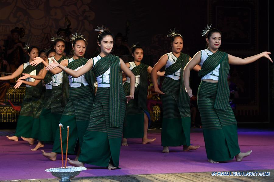 YUNNAN, octubre 16, 2017 (Xinhua) -- Imagen del 14 de octubre de 2017, de mujeres bailando para turistas en un sitio escénico en Menglian Dai, en el Condado Autónomo Lahu y Hua en Pu'er, en la provincia de Yunnan, en el suroeste de China. Pu'er, una ciudad en el suroeste de Yunnan, se ha estado esforzando por reducir su población golpeada por la pobreza en los a?os recientes. En total, 527,000 personas han superado la pobreza en los últimos cinco a?os. Para agosto de 2017, el número de personas empobrecidas se ha reducido a 358,000. (Xinhua/Lin Yiguang)