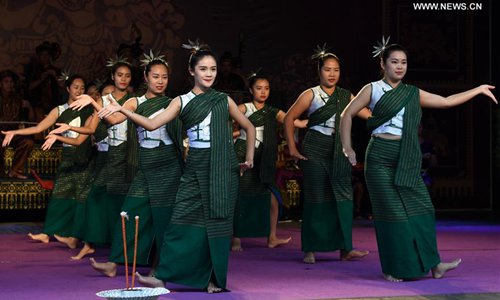 Artistas bailan ante turistas en un hermoso paraje de Pu'er, en la provincia de Yunnan, suroeste de China. En los últimos cinco a?os, 527,000 personas han logrado salir de la pobreza. En agosto del 2017, aún 358,000 permanecían en esta desdichada condición. 14 de octubre del 2017. (Foto: Xinhua)
