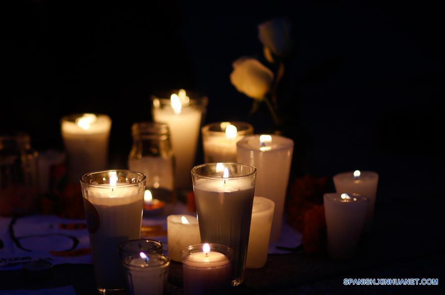 Personas participan en el evento "Noche de Velas", un homenaje a las víctimas de los terremotos del 7 y 19 de septiembre, en el Monumento a la Revolución, en la Ciudad de México, capital de México, el 15 de octubre de 2017. (Xinhua/Francisco Ca?edo)