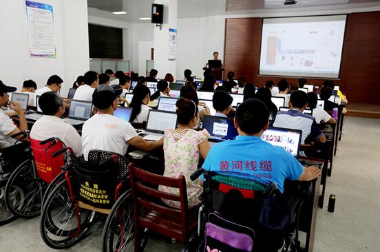 Foto:Las personas con minusvalía reciben capacitación en comercio electrónico en el condado Guangshan, provincia de Henan, en el centro de China. La capacitación es gratuita, gracias al apoyo del condado. Foto de la web del gobierno del condado Guangshan.