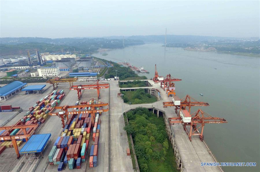 SICHUAN, octubre 16, 2017 (Xinhua) -- Imagen del 10 de mayo de 2017, del Puerto de Luzhou en la provincia de Sichuan, en el suroeste de China. El Yangtze, el tercer río más largo del mundo, atraviesa nueve provincias chinas y dos municipalidades, cubriendo 2.05 millones de kilómetros cuadrados. El Cinturón Económico del Río Yangtze, que representa más del 40 por ciento de la población nacional y el Producto Interno Bruto (PIB), es un nuevo motor de crecimiento para el país, reduciendo la brecha de desarrollo entre las regiones del este, oeste y centro. (Xinhua/Xue Yubin)