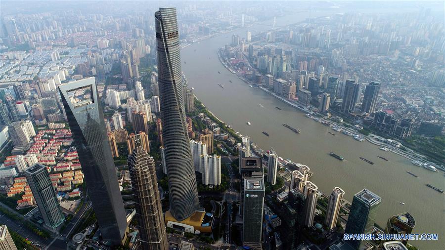 Imagen del 14 de mayo de 2017, de la vista aérea de Lujiazui en Shanghai, en el este de China. El Yangtze, el tercer río más largo del mundo, atraviesa nueve provincias chinas y dos municipalidades, cubriendo 2.05 millones de kilómetros cuadrados. El Cinturón Económico del Río Yangtze, que representa más del 40 por ciento de la población nacional y el Producto Interno Bruto (PIB), es un nuevo motor de crecimiento para el país, reduciendo la brecha de desarrollo entre las regiones del este, oeste y centro. (Xinhua/Ding Ting)