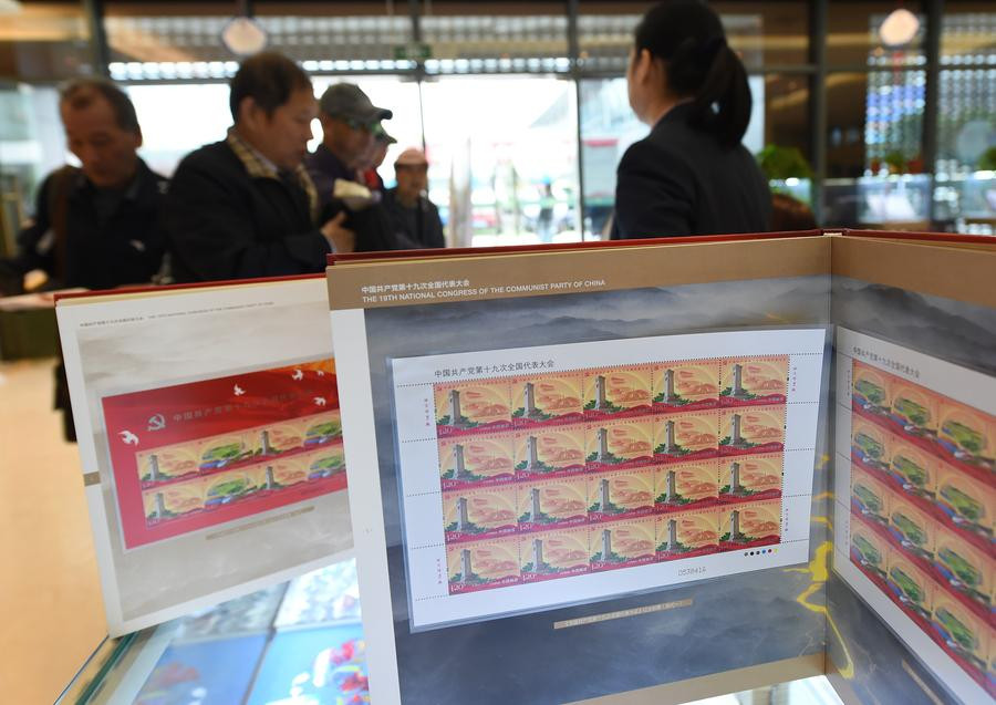 Los sellos postales con motivo del XIX Congreso Nacional del Partido Comunista de China salieron a la venta este miércoles. La empresa Correos de China emitió un conjunto de dos sellos postales alegóricos al magno evento. Nanjing, provincia de Jiangsu. [Foto: Xinhua]