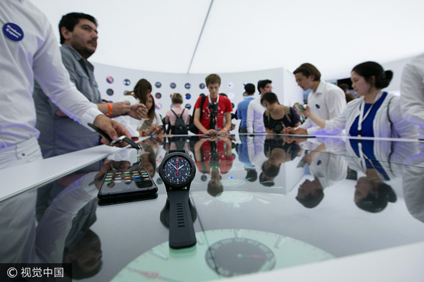 Un reloj inteligente se exhibe en Berlín, el 31 de agosto del 2016. El nuevo reloj inteligente admite tramitar pagos. [Foto: VCG]