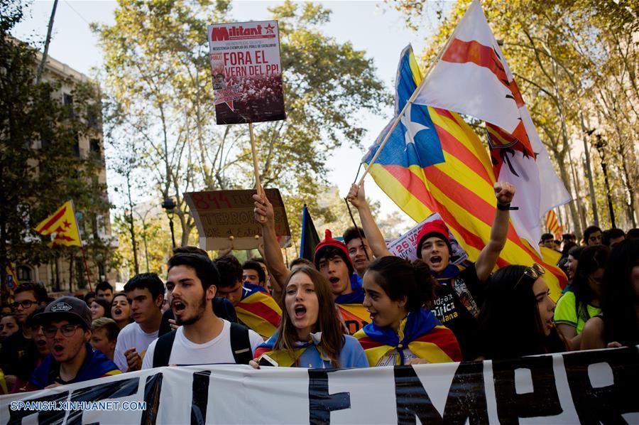 Personas participan durante una marcha en apoyo a la independencia de Catalu?a, en Barcelona, Espa?a, el 26 de octubre de 2017. (Xinhua/Jordi Boixareu/ZUMAPRESS)