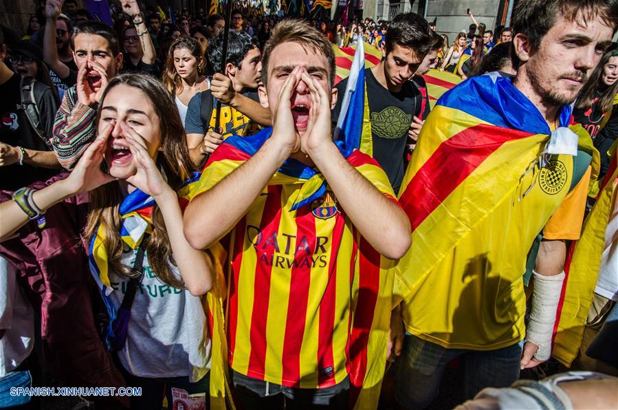Personas participan durante una marcha de estudiantes en apoyo a la independencia de Catalu?a, en Barcelona, Espa?a, el 26 de octubre de 2017. (Xinhua/Paco Freire/SOPA/ZUMAPRESS)