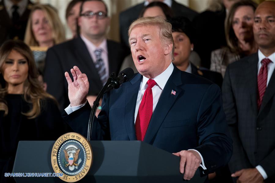 El presidente estadounidense, Donald Trump, pronuncia un discurso durante un evento en el que destaca los esfuerzos para combatir la crisis de opioides, en la Casa Blanca, en Washington D.C., Estados Unidos, el 26 de octubre de 2017. (Xinhua/Ting Shen)