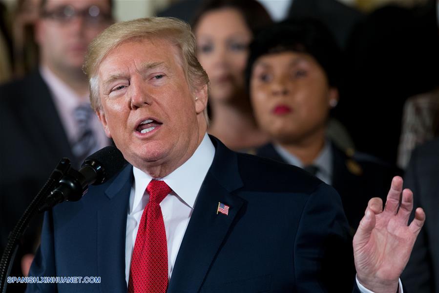El presidente estadounidense, Donald Trump, pronuncia un discurso durante un evento en el que destaca los esfuerzos para combatir la crisis de opioides, en la Casa Blanca, en Washington D.C., Estados Unidos, el 26 de octubre de 2017. (Xinhua/Ting Shen)