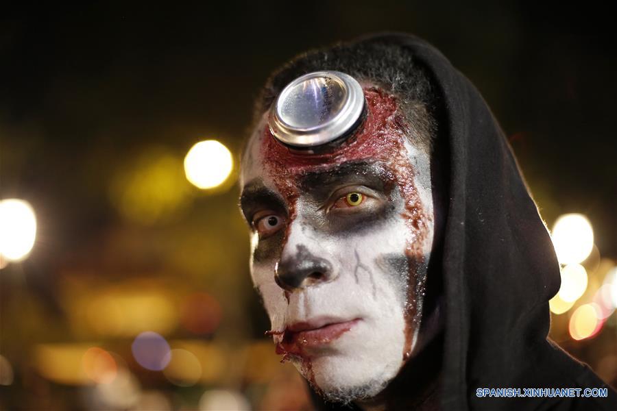 SAN JOSE, octubre 28, 2017 (Xinhua) -- Una persona disfrazada posa durante la "Caminata Zombie" en San José, capital de Costa Rica, el 28 de octubre de 2017. De acuerdo con información de la prensa local, residentes portaron diversos disfraces para participar en la caminata zombie, evento organizado para celebrar Halloween. (Xinhua/Kent Gilbert)