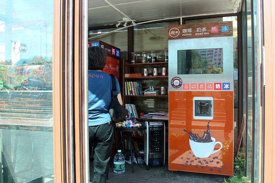 Cafetería modular, de servicio 100 por ciento automatizado, en la Universidad de Negocios Internacionales y Economía de Beijing, 5 de septiembre del 2017. [Foto: VCG]