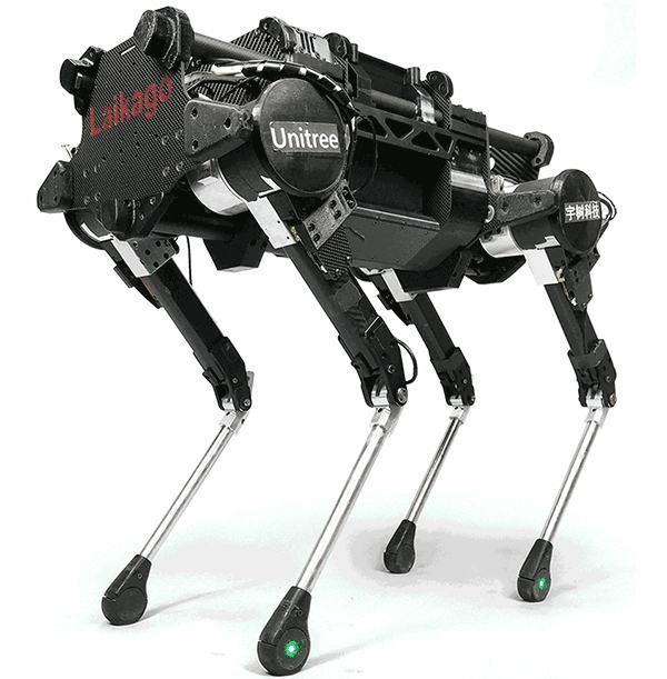 El perro robótico, desarrollado por UnitreeRobotics, que fue creado por Wang en 2016, puede caminar hacia adelante, hacia atrás, hacia los lados, y sobre terreno accidentado.