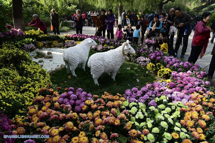 JINAN, noviembre 2, 2017 (Xinhua) -- Personas visitan las flores de crisantemo en el Parque Primavera de Baotu, en Jinan, ciudad capital de la provincia de Shandong, en el este de China, el 2 de noviembre de 2017. Más de 500 variedades de crisantemo son exhibidas en la 38 Exposición del Crisantemo del Parque Primavera de Baotu que permanecerá hasta el 25 de noviembre. (Xinhua/Guo Xulei)