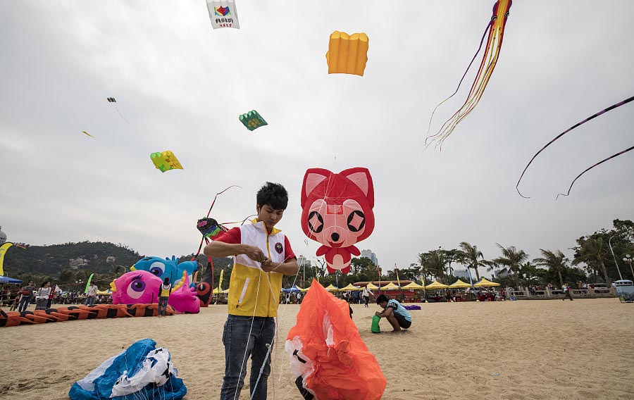 Un hombre vuela su cometa en el Festival de Cometas en Zhuhai, provincia de Guangdong el sábado. [Foto / VCG]