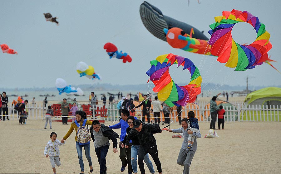 Los participantes vuelan sus cometas en el Festival de Cometas de Xiamen. [Foto / VCG]