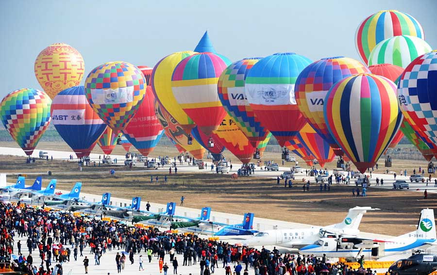 Wuhan, 07/11/2017 (El Pueblo en Línea) -Cien parejas celebran su boda en globos aerostáticos durante la Expo World Fly-in 2017 organizada por la Federación Mundial de Deportes de Aire en Wuhan, provincia de Hubei, el lunes. Con este evento se estableció un nuevo récord mundial Guinessal número de parejas participantes que se casan en el aire. [Foto / VCG]