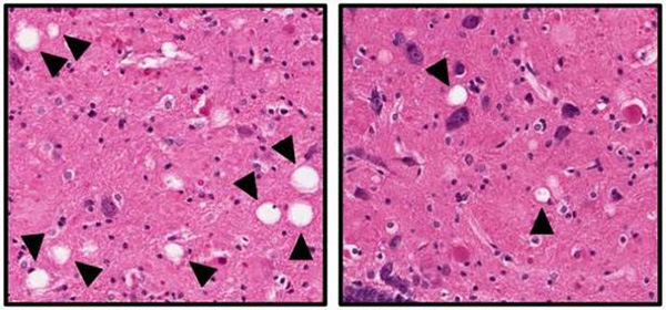 Disminución de muerte neuronal (en blanco) con el fármaco experimental (izquierda)
