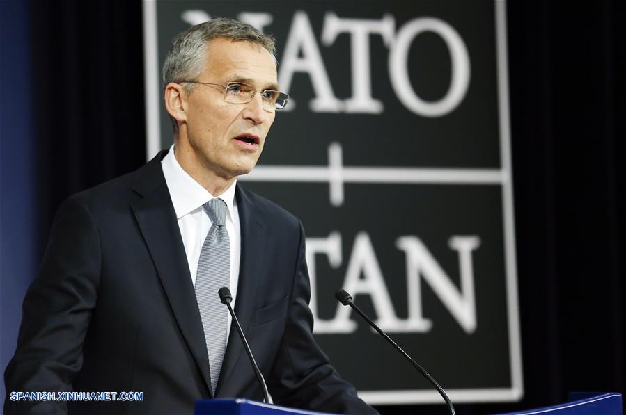 El secretario general de la Organización del Tratado del Atlántico Norte (OTAN), Jens Stoltenberg, participa durante una conferencia de prensa después del primer día de dos de una reunión de Ministros de Defensa de la OTAN, en la sede de la OTAN, en Bruselas, Bélgica, el 8 de noviembre de 2017. (Xinhua/Ye Pingfan)