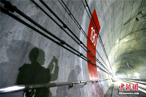 Una foto tomada el 8 de noviembre muestra cables para telecomunicaciones en la vía del tren de alta velocidad Xi ' an-Chengdu en el túnel de las monta?as de Qinling. [Foto: chinanews .com]