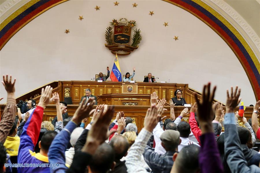 Diputados votan durante una sesión plenaria de la Asamblea Nacional Constituyente (ANC), en el Palacio Federal Legislativo, en Caracas, Venezuela, el 8 de noviembre de 2017. (Xinhua/Zurimar Campos/AVN)