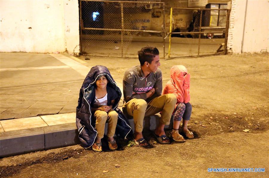 BAGDAD, noviembre 12, 2017 (Xinhua) -- Personas se reúnen en una banqueta en Bagdad, Irak, el 12 de noviembre de 2017. Un fuerte sismo de magnitud 7.2 ocurrió el domingo en la provincia de Sulaimaniyah, norte de Irak, y dejó cuatro muertos y 50 heridos, según el sitio de noticias kurdo Rudaw. El sismo fue sentido en muchas provincias iraquíes del centro y norte del país, incluyendo la capital Bagdad. (Xinhua/Khalil Dawood)