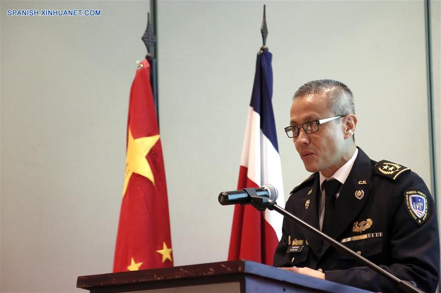 SAN JOSE, noviembre 14, 2017 (Xinhua) -- El subdirector de la Fuerza Pública, Nils Ching, pronuncia un discurso durante el acto de la Embajada de la República Popular China del nombramiento oficial de 13 funcionarios de enlace para la protección consular de sus ciudadanos en Costa Rica, en San José, capital de Costa Rica, el 14 de noviembre de 2017. La Embajada de la República Popular China realizó el martes el nombramiento oficial de sus 13 funcionarios de enlace para la protección consular de sus ciudadanos en Costa Rica, en medio de un acto en el que estuvieron presentes altas autoridades del gigante asiático y del país centroamericano. Sobre los nombramientos, el embajador de China en Costa Rica, Tang Heng, se?aló que representan el compromiso de su país por "la salvaguardia de la seguridad de los ciudadanos chinos en el exterior", punto hacia el que "el gobierno chino siempre ha prestado mucha importancia". (Xinhua/Kent Gilbert)
