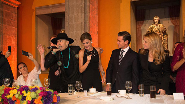 La Reina, junto al cantante Taboo, el presidente de México, Pe?a Nieto, y su esposa, Angélica Rivera (PRESIDENCIA MEXICO)