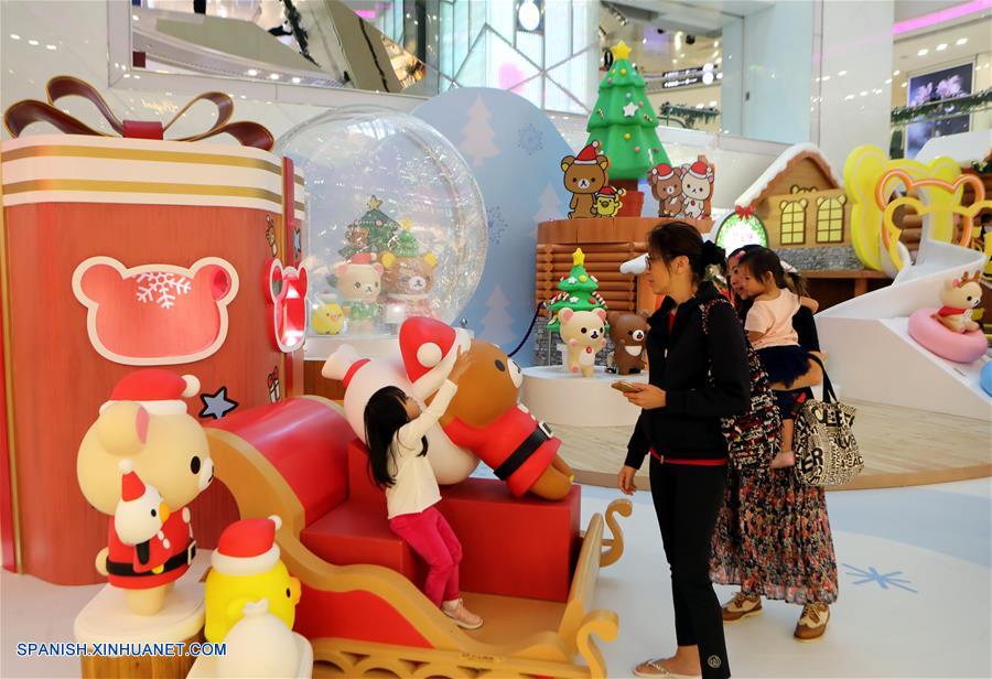 HONG KONG, noviembre 16, 2017 (Xinhua) -- Personas observan decoraciones navide?as en un centro comercial, en Causeway Bay de Hong Kong, en el sur de China, el 16 de noviembre de 2017. (Xinhua/Li Peng)