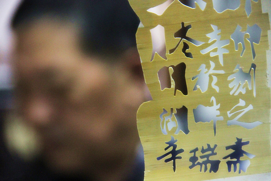 Zhang Chongshengtambién utiliza su arte para crear caligrafía. [Foto / IC]