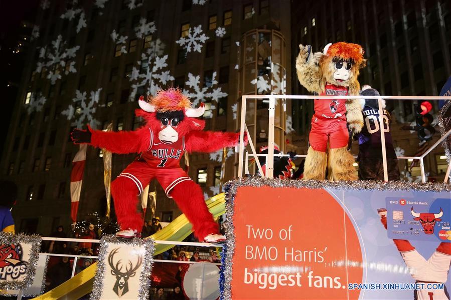 Actores participan en el 26 Desfile del Festival de Luces de Magnificent Mile, en la Avenida North Michigan, en Chicago, Estados Unidos de América, el 18 de noviembre de 2017. Con docenas de carros alegóricos, danzas y actuaciones presentadas por grupos de arte locales y universidades, este desfile marcó el comienzo de la temporada vacacional anual. (Xinhua/Wang Ping)