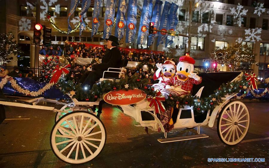 CHICAGO, noviembre 19, 2017 (Xinhua) -- Actores participan en el 26 Desfile del Festival de Luces de Magnificent Mile, en la Avenida North Michigan, en Chicago, Estados Unidos de América, el 18 de noviembre de 2017. Con docenas de carros alegóricos, danzas y actuaciones presentadas por grupos de arte locales y universidades, este desfile marcó el comienzo de la temporada vacacional anual. (Xinhua/Wang Ping)
