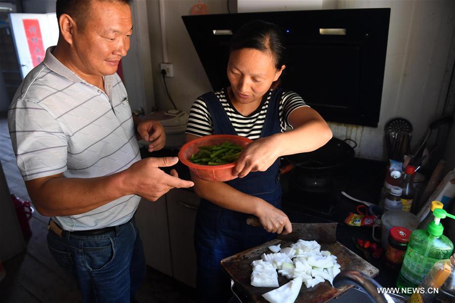El doctor Yu Jiajun y su esposa Wu Qijiao preparan el almuerzo en la Clínica Haidao, fondeada en el embalse Jinzhai de la Reserva Xianghongdian, provincia de Anhui. 14 de septiembre del 2017. (Foto: Xinhua)