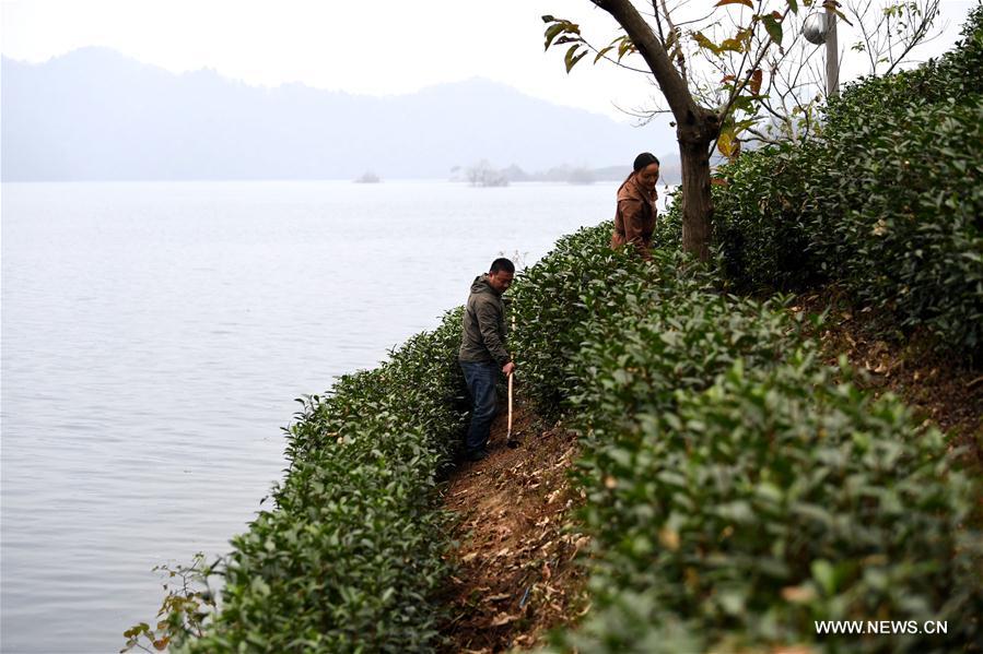 El doctor Yu Jiajun y su esposa Wu Qijiao cultivan té en su parcela en la aldea Haidao, una “isla” monta?osa de la Reserva Xianghongdian. 14 de septiembre del 2017. (Foto: Xinhua)