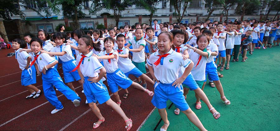 Beijing,23/11/2017(El Pueblo en Línea)-Cada vez hace más frío. Para energizarse, los estudiantes de diversas provincias chinas realizan diversos ejercicios físicos.La variedad va más allá lo imaginado.Estudiantes de primaria hacen el "conejo" en Haikou, provincia de Hainan, 12 de octubre del 2013.[Foto: VCG]