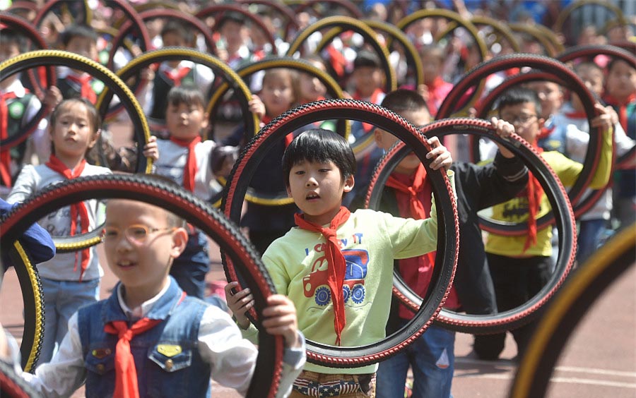 Beijing,23/11/2017(El Pueblo en Línea)-Cada vez hace más frío. Para energizarse, los estudiantes de diversas provincias chinas realizan diversos ejercicios físicos.La variedad va más allá lo imaginado.Estudiantes de primariase ejercitan con las“manos en el volante” en Nanjing, provincia de Jiangsu, 28 de abril del 2011. [Foto: VCG]