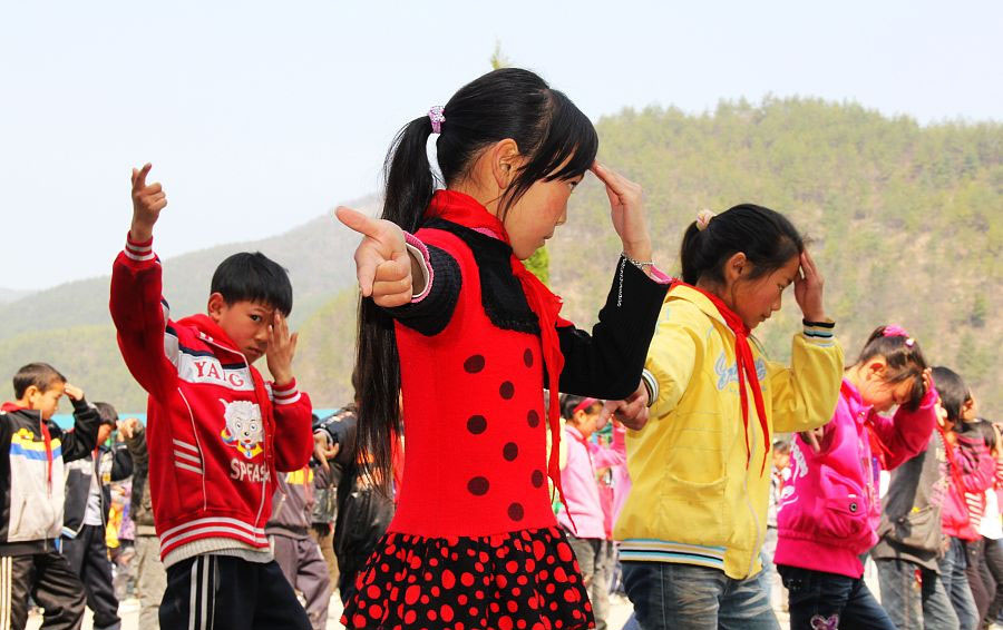 Beijing,23/11/2017(El Pueblo en Línea)-Cada vez hace más frío. Para energizarse, los estudiantes de diversas provincias chinas realizan diversos ejercicios físicos.La variedad va más allá lo imaginado.Estudiantes de primaria imitan a Michael Jackson en Wushan, Chongqing, 14 de abril del 2011. [Foto: VCG]